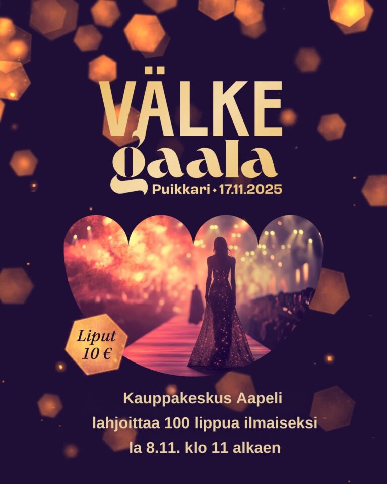 Välke – gaalan lippuja ilmaiseksi 100 kpl la 8.11. klo 11 alkaen. Aapelissa jaetaan sadalle nopeimmalle lippuja Välke gaalaanla 8.11. klo 11 alkaen! Lippuja tarjolla
